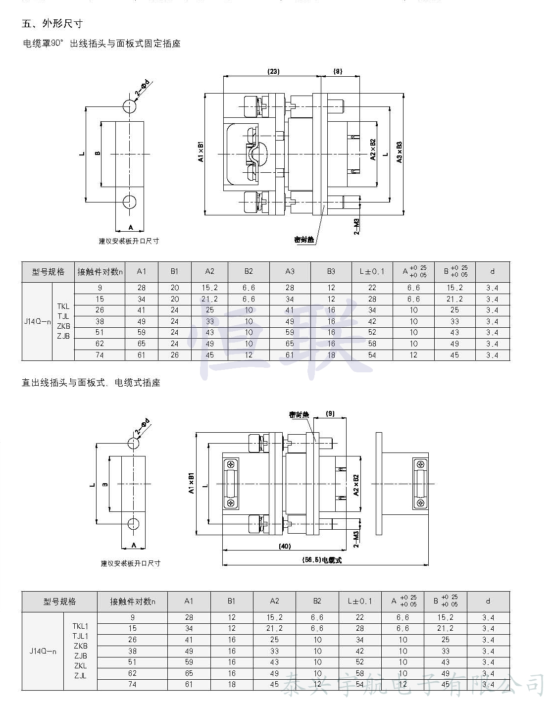 產(chǎn)品型號(hào):J14Q系列矩形電連接器