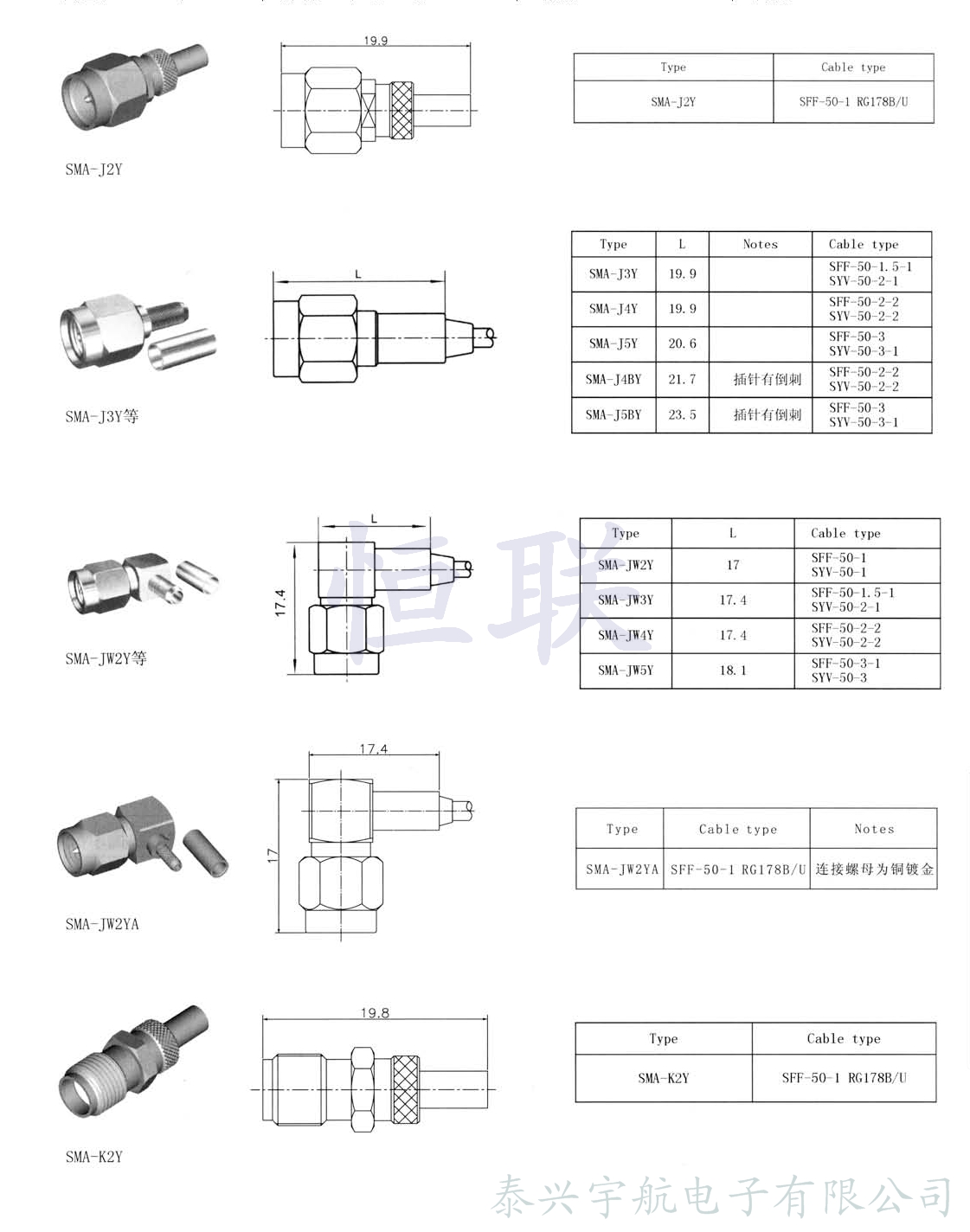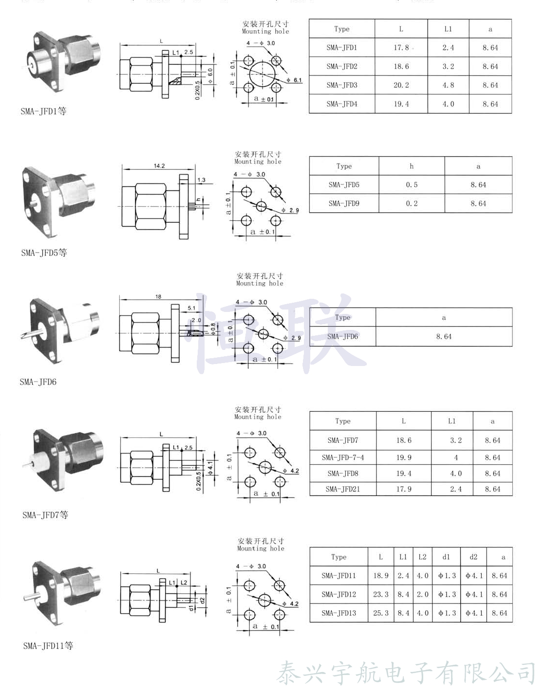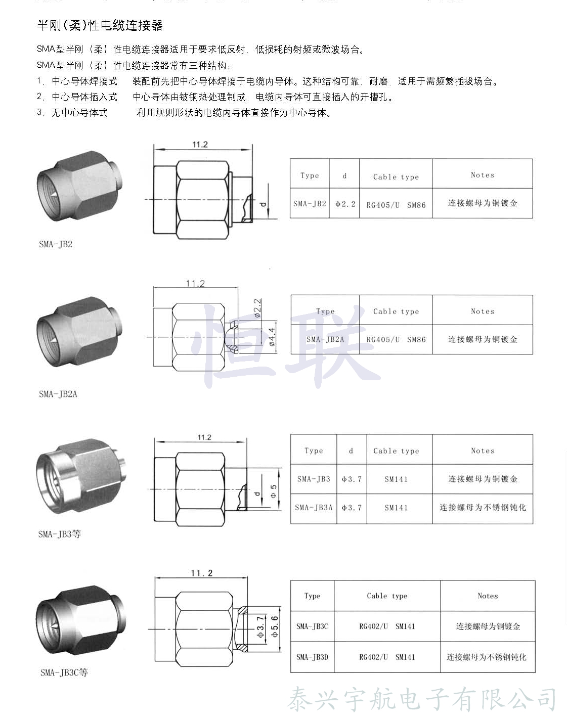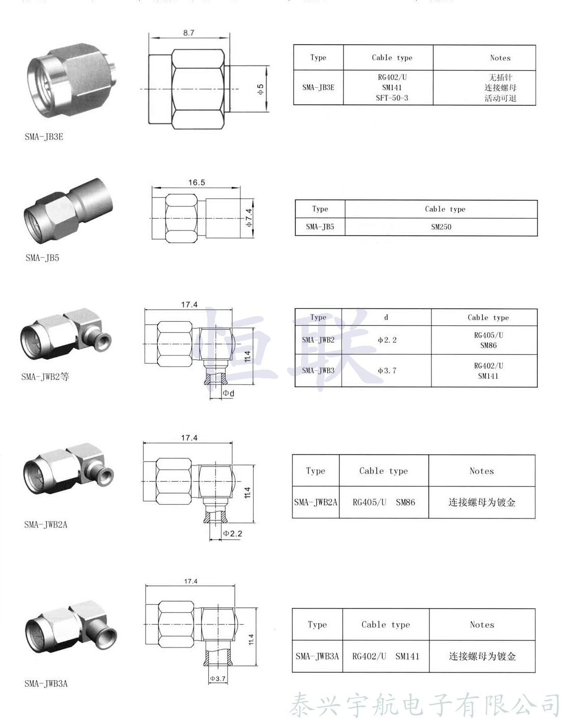 SMA系列產(chǎn)品是一種應(yīng)用廣泛的小型螺紋連接的同軸連接器,它具有頻帶寬、性能優(yōu)、高可靠、壽命長(zhǎng)的特點(diǎn)。適用于微波設(shè)備和數(shù)字通信系統(tǒng)的射頻回路中連接射頻電纜或微帶線。