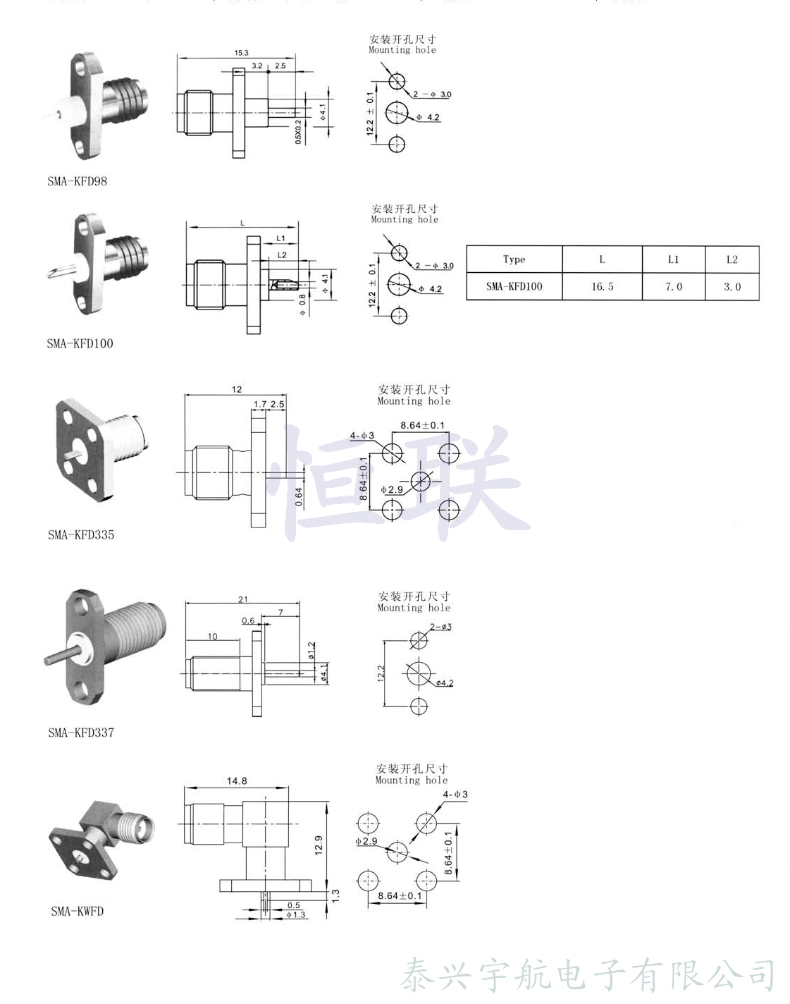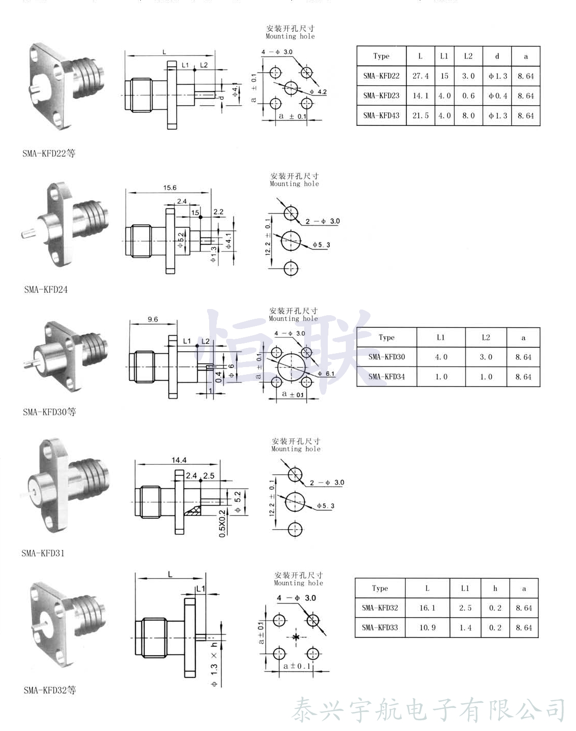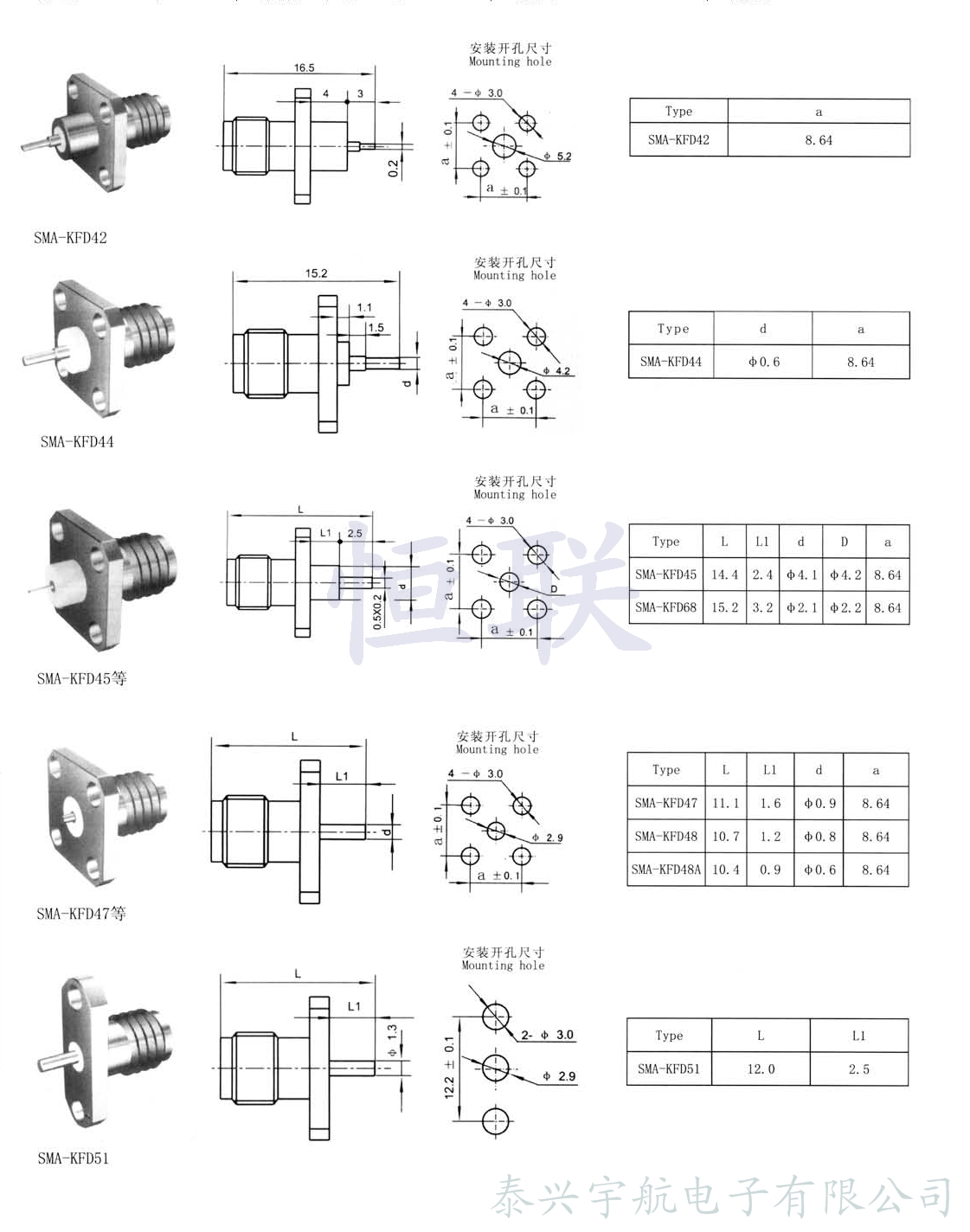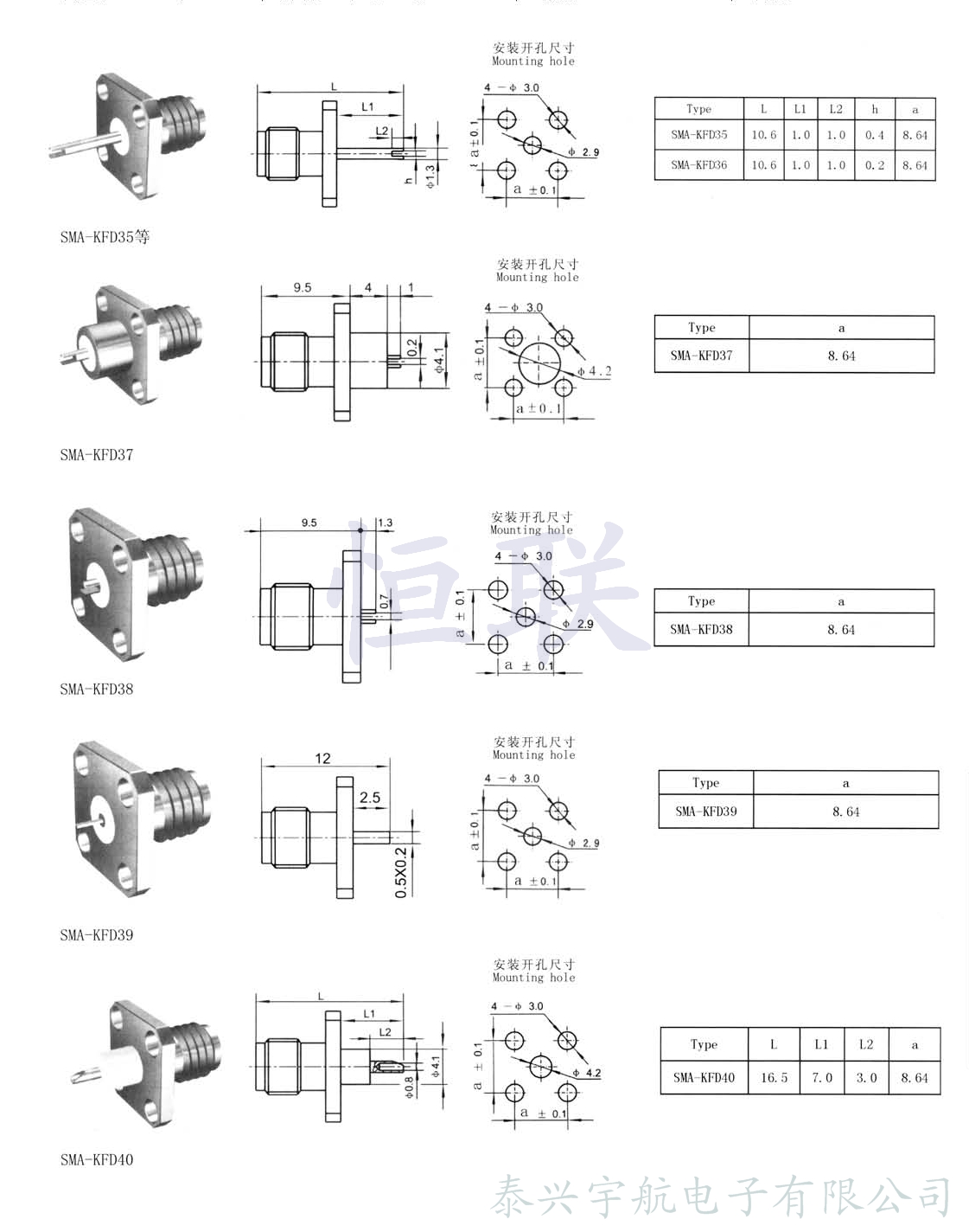 SMA系列產(chǎn)品是一種應(yīng)用廣泛的小型螺紋連接的同軸連接器,它具有頻帶寬、性能優(yōu)、高可靠、壽命長(zhǎng)的特點(diǎn)。適用于微波設(shè)備和數(shù)字通信系統(tǒng)的射頻回路中連接射頻電纜或微帶線。