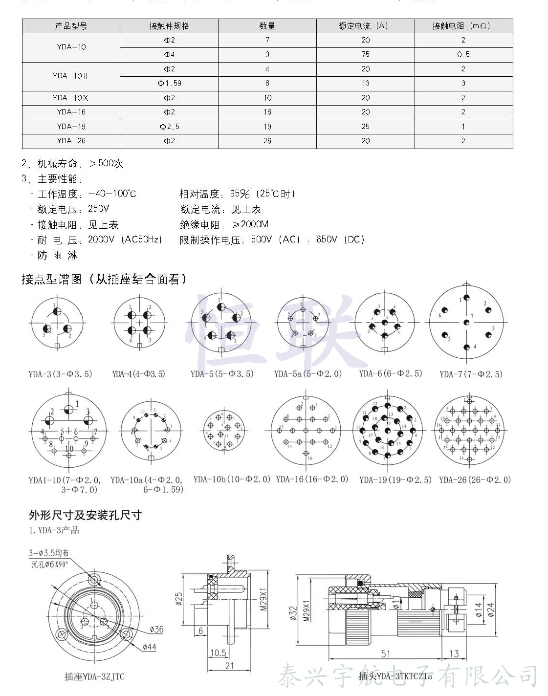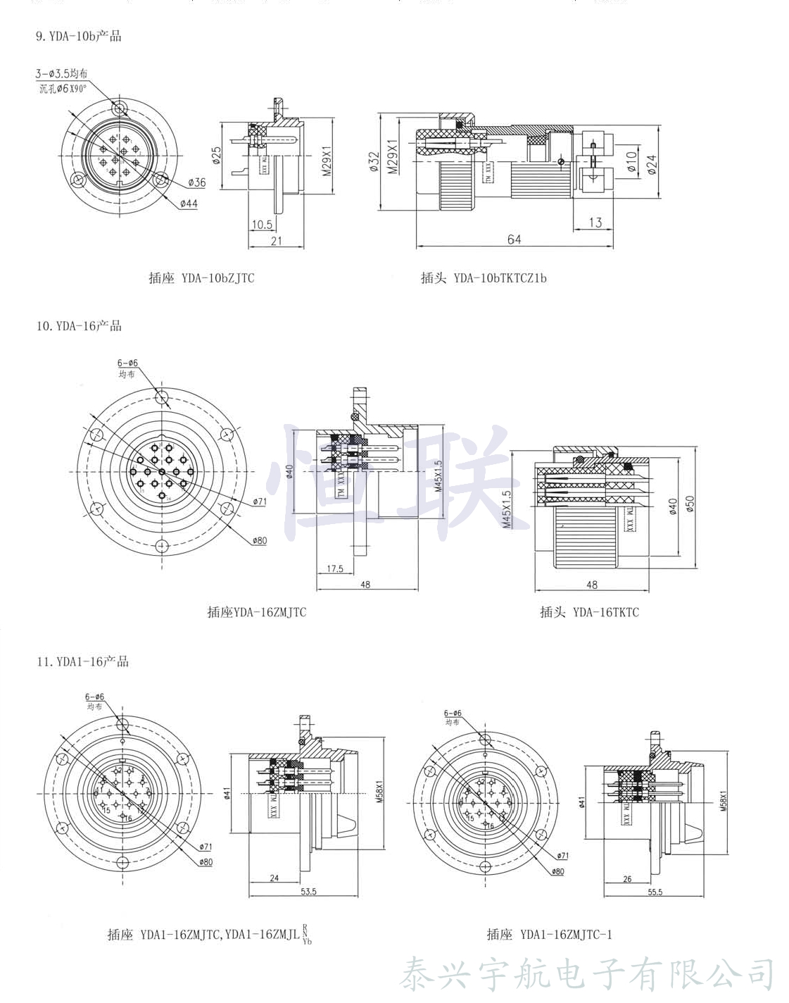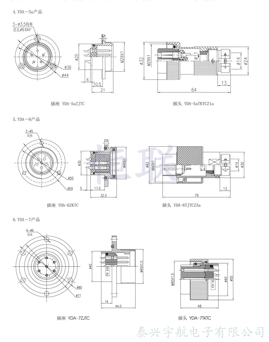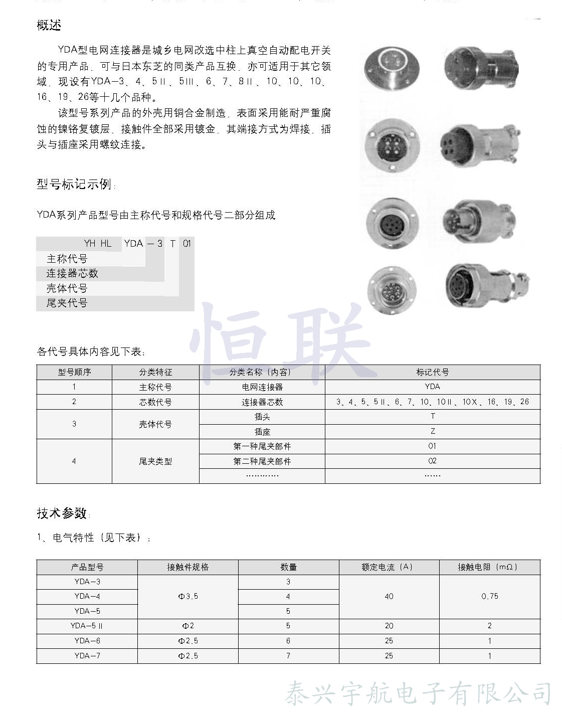 YDA系列圓形電力專用電連接器,是城鄉(xiāng)電網(wǎng)改造中柱上真空自動(dòng)配電開關(guān)的專用產(chǎn)品,可與日本東芝的同類產(chǎn)品互換。該型號(hào)系列產(chǎn)品的外殼采用銅合金制造,表面采用能耐嚴(yán)重腐蝕的鎳鉻復(fù)鍍層,接觸件全部采用鍍金,其端接方式為焊接,插頭與插座采用螺紋連接 。