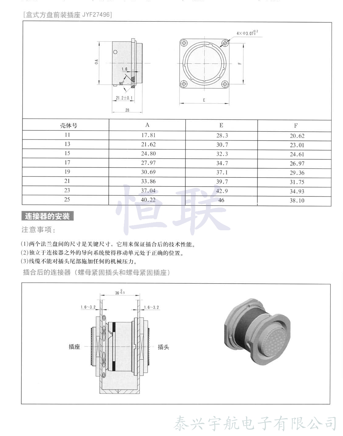 我公司為唯一""泰興恒聯(lián)電連接器""的生產(chǎn)廠家,望消費者購買""泰興恒聯(lián)""品牌產(chǎn)品,我公司尚未授權(quán)任何廠家或經(jīng)銷商代產(chǎn)、代售.該產(chǎn)品詳細(xì)介紹如下: